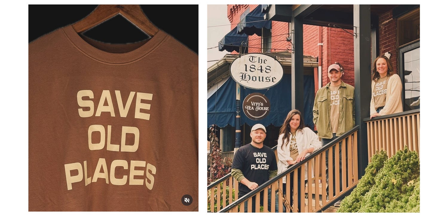 Amy Gartley bought two historic buildings in Uniontown. She turned one into The 1848 House, a B&B inside a building that’s been standing since thirteen years before the Civil War. She opened an art studio next door called Apple Atcha Studio. (say it out loud. I love that name). She made shirts that say SAVE OLD PLACES and sells them. Three simple words in a simple font. I need to get myself one.
