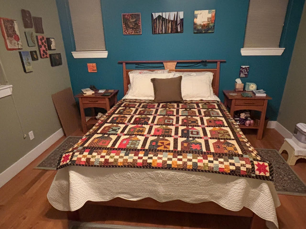 This is the 2026 Ruins Quilt on the bed of its new owner, Lynn Adamo. Lynn won the quilt in our raffle and wrote to tell me it arrived. “Oh boy, is it magnificent,” she said. “I still can’t believe my luck.”